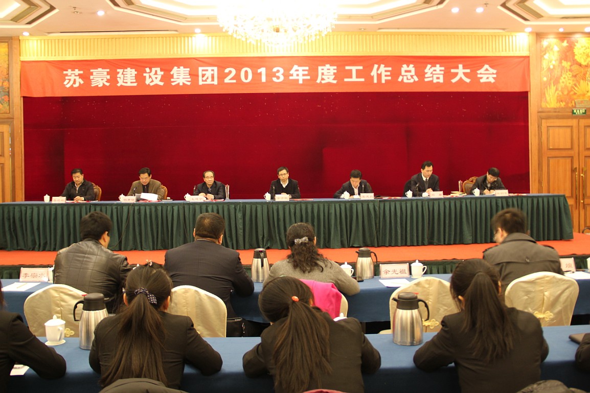 2014年1月23日,苏豪建设集团召开2013年度工作总结大会。控股集团副总裁、建设集团党委书记余亦民,建设集团吴廷昌董事长和领导班子及干部职工150人参加了会议。