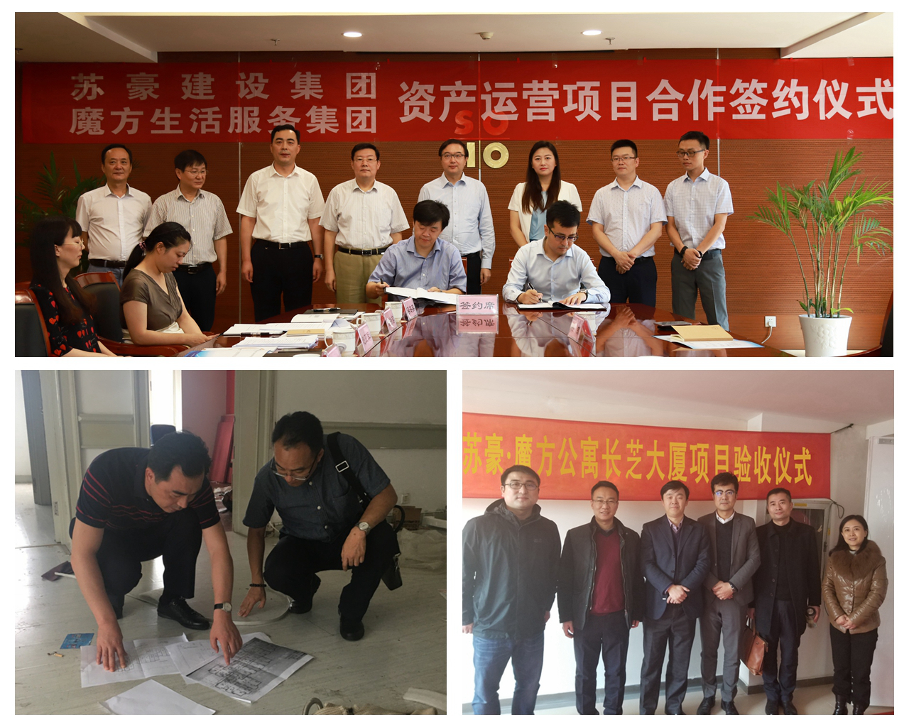 2018年7月18日,苏豪•魔方公寓长芝大厦项目在苏豪控股集团主要领导的见证下正式签约,在项目改造施工过程中,经历了上海进博会停工、物业要求双休日禁止施工并在工作日限时施工、周边居民对施工的阻挠等一系列困难,为此周君董事长多次亲赴现场了解施工进度,帮助解决项目实际困难。在双方的共同努力下,经过180多天紧锣密鼓的施工,如今旧貌换新颜,证明主动寻找优质合作伙伴,共同打造适合市场需求的产品是实现资产运营成功的关键。